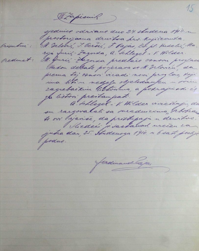 VII zapisnik sjednice održane 24. studenoga 1910. u prostorijama Društva hrvatskih književnika