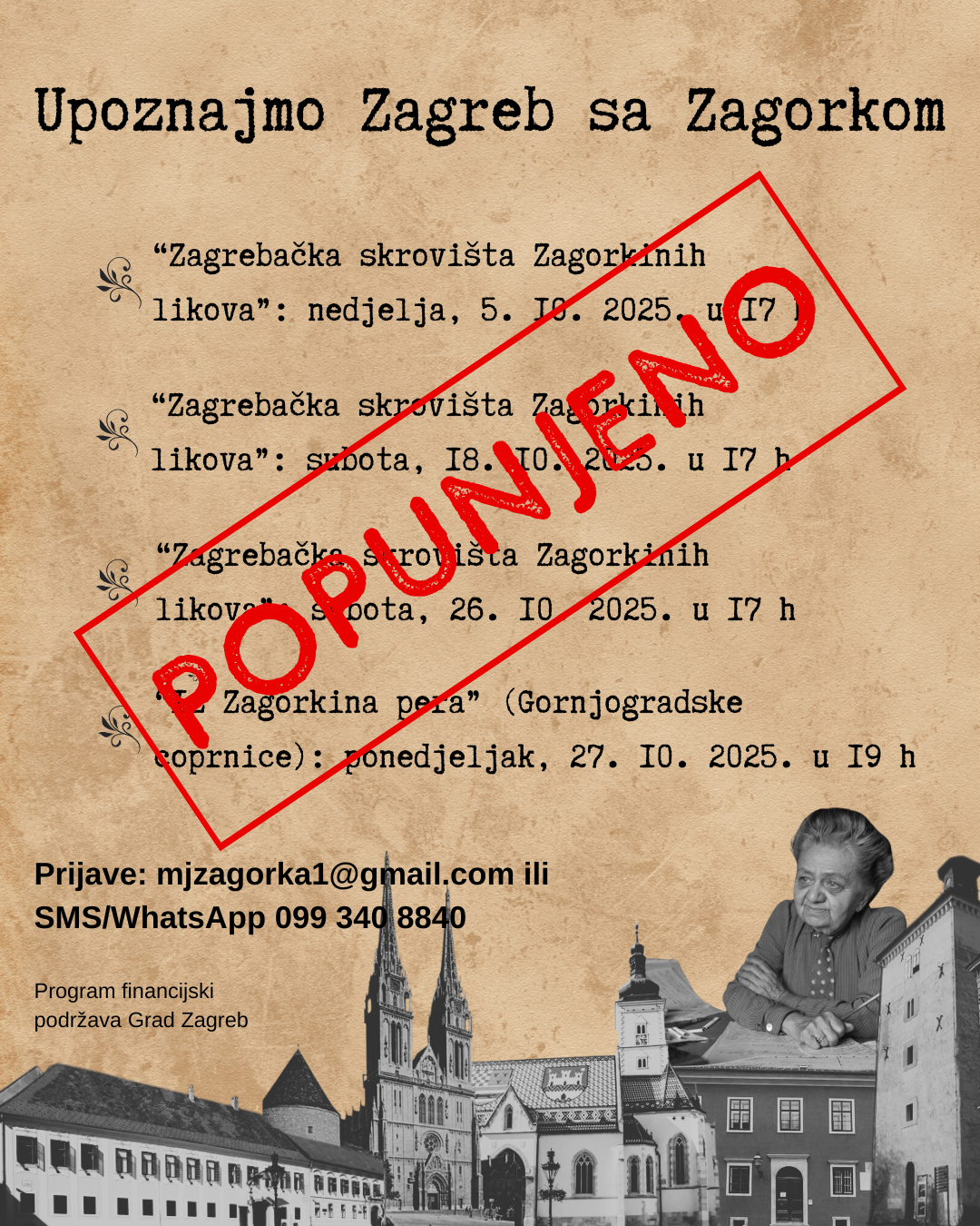 Svi termini šetnji “Zagrebačka skrovišta Zagorkinih likova” i “Iz Zagorkina pera” popunjeni su!