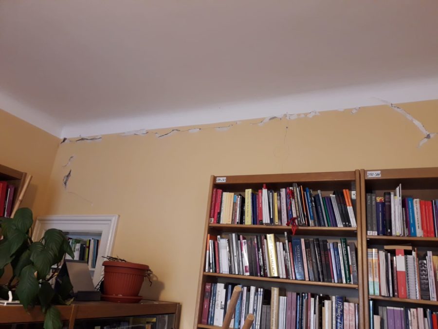 Zidovi su pretrpjeli najveća oštećenja, ali čekamo procjenu statičara. Nama kao laicima izgleda poprilično loše. ☹️ S druge strane, sretne smo što je postav prošao relativno dobro, bez većih oštećenja.