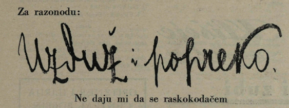 4. Iglica. 1929. Uzduž i popreko: Ne daju mi da se raskokodačem. Ženski list, god. V, br. 10, str. 45.